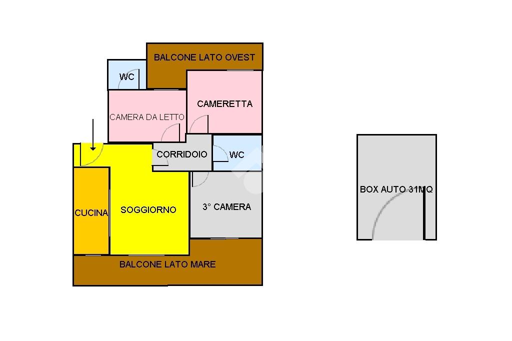La disposizione interna comprende un soggiorno accogliente, una ampia cucina, due camere da letto e uno studio, perfetto per chi lavora da casa. La proprietà è completata da due bagni, progettati per il massimo comfort. Comprensivo nella vendita un box interrato di 31 mq e un posto auto scoperto