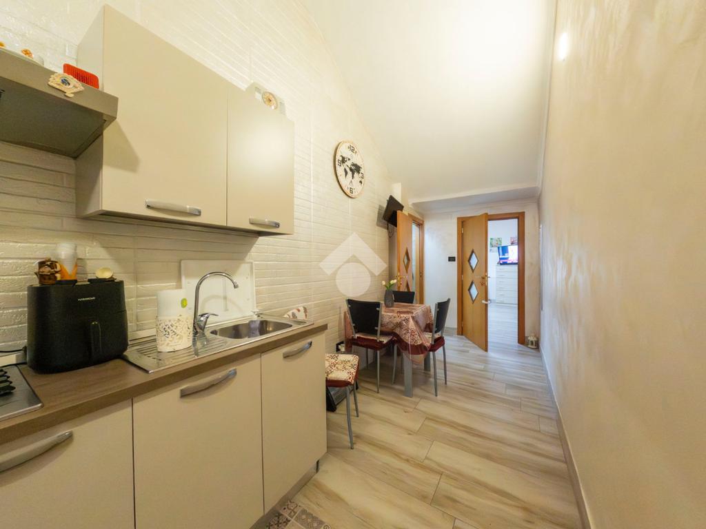 L’ingresso apre su una luminosa zona giorno con sala da pranzo e cucina, un ambiente confortevole e ben sfruttato, perfetto per i momenti di relax e per accogliere ospiti in un’atmosfera intima e conviviale. La zona notte comprende una camera da letto accogliente, e un bagno.